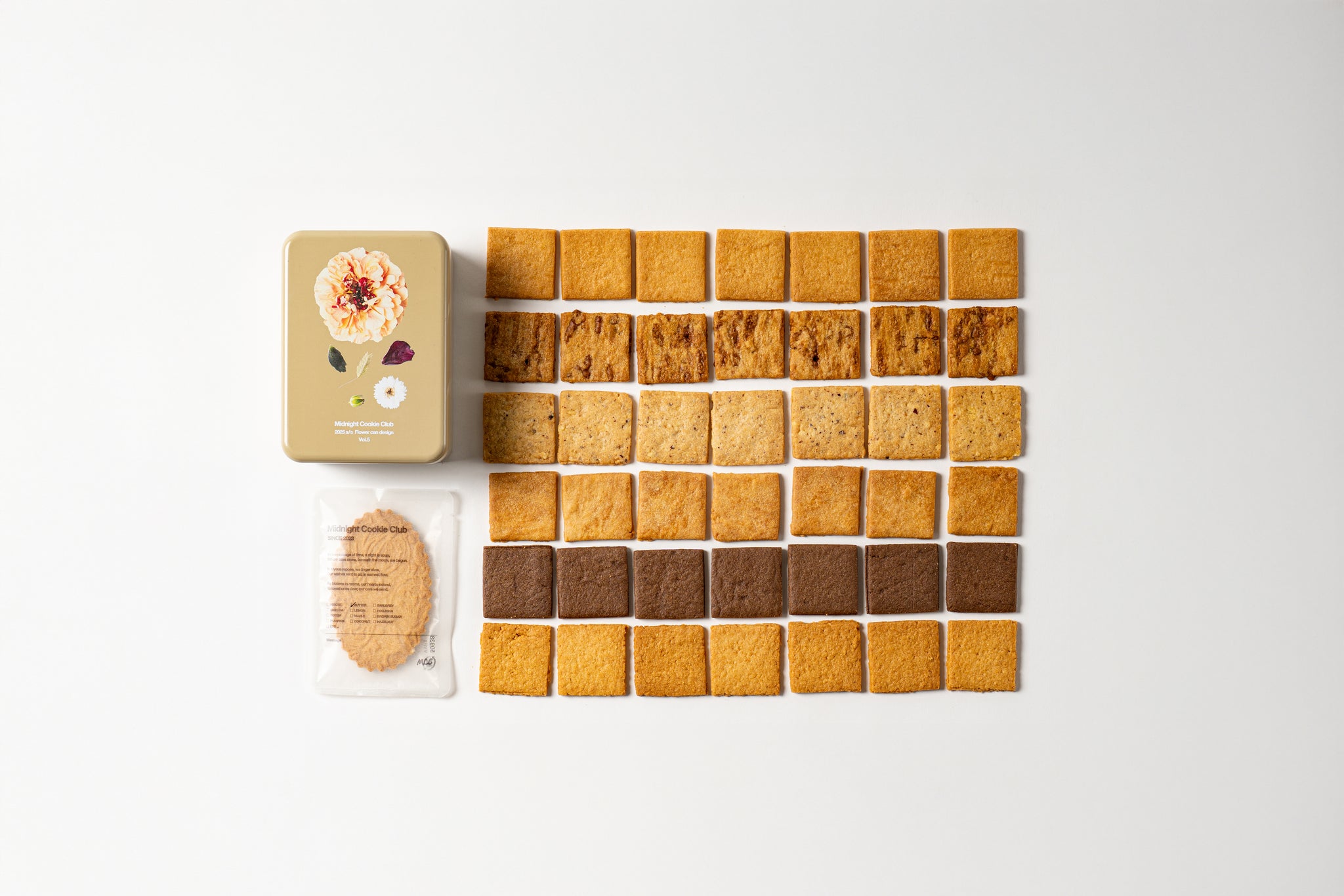 以前は個包装の7種のクッキーを入れていましたが、「みんなでちょっとずつつまみたい」「少しずつ自分の為に食べたい」方のお声を何度も見て、新しいサイズも含めて開発しました。 個包装の仕様の時よりも増量して入れています。